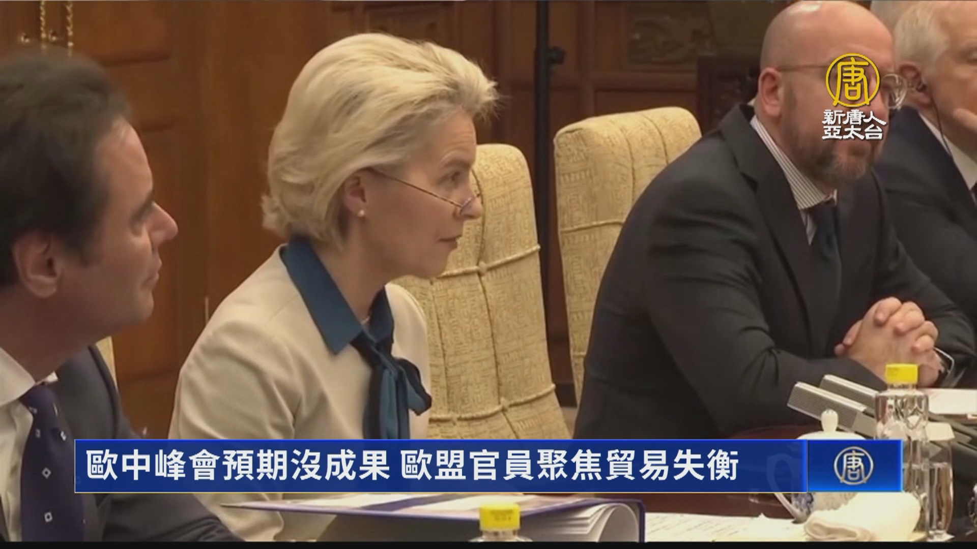 【新唐人亞太台 2023 年 12 月 07 日訊】歐中領導人會議今天舉行,上午中共黨魁與歐洲理事會主席米歇爾以及歐盟執委會主席馮德萊恩,在北京會晤。這是四年以來,雙方第一次的面對面高峰會,討論的議題包括雙方的貿易失衡,俄烏戰爭等一系列問題,外界普遍預期不會有具體成果。由於中國與歐洲的貿易逆差,已高達 4 千億歐元,馮德萊恩會前表示不會容忍貿易關係長期失衡。外媒報導,歐盟領導人計劃警告北京當局,除非中方採取行動解決經濟摩擦,並且限制向俄羅斯出口用於烏克蘭戰爭的商品,否則歐盟實施新的制裁和貿易懲罰措施。