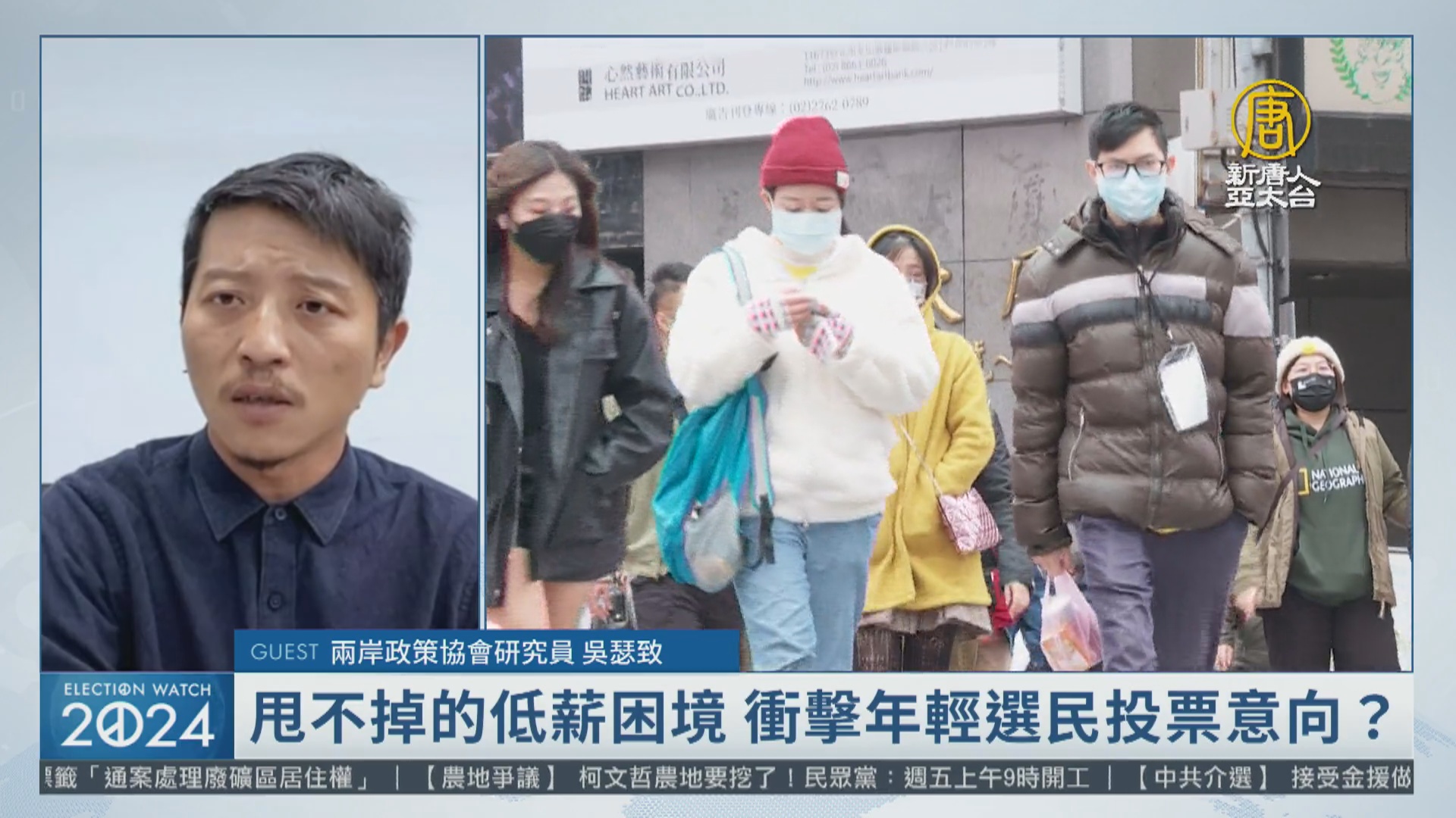 【新唐人亞太台 2023 年 12 月 21 日訊】外媒指出,有調查顯示「低薪困境」是年輕選民最重視的議題之一,將對候選人構成選舉壓力,甚至長遠來看,恐怕會損害台灣青年對民主政治的信心。請教吳老師,您對台灣低薪困境可能左右年輕選民投票意向的觀察。