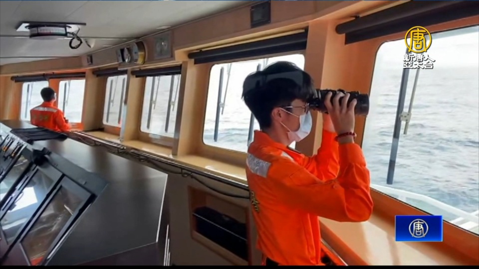 台南艦艇上,搜救人員拿著望遠鏡,仔細查看,海面上的任何動靜。