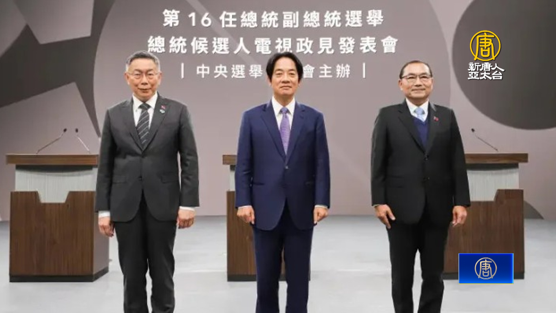 【新唐人亞太台 2023 年 12 月 28 日訊】2024總統大選今天進入倒數第16天,今晚七點是總統候選人第三場政見發表會,也是最後一場。柯文哲、賴清德、侯友宜將再度同台交鋒,每人一輪為10分鐘,總計有30分鐘時間可闡述政策理念,而本週六及下周一,三人將進行公開辯論。
