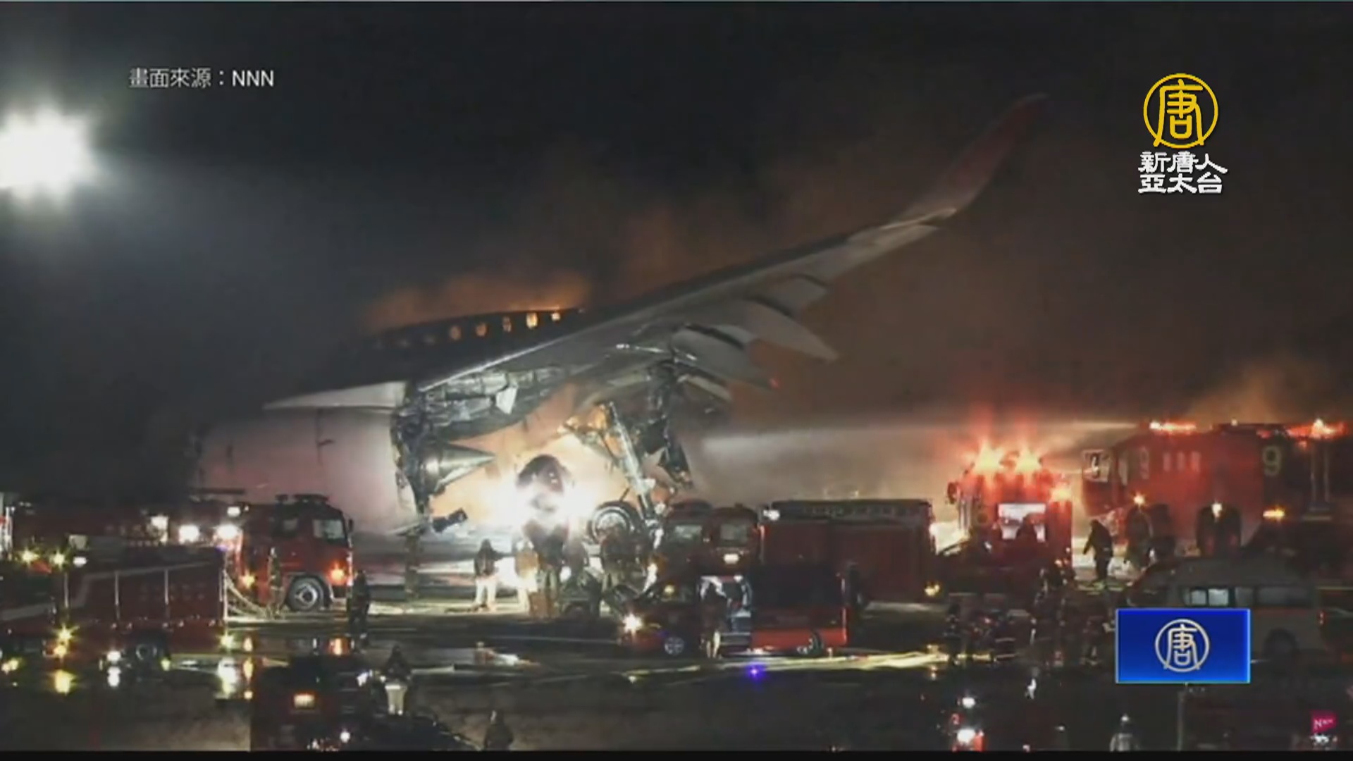 2024-01-03 08:03:10早安新唐人,國際消息先帶您關心,週二,在日本東京的羽田機場,一架日本航空飛機降落時,與海上保安廳的飛機發生擦撞,機身起火。客機上的367名乘客,和12名機組人員,全部安全逃離。不幸的是,保安廳飛機機長受傷,其餘五人喪生。