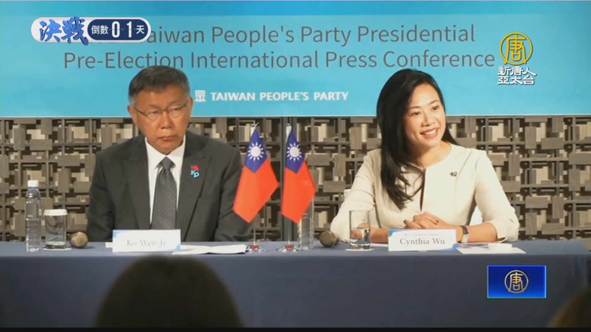 【新唐人亞太台 2024 年 01 月 12 日訊】民眾黨正副總統候選人柯文哲、吳欣盈,今天(12日)上午舉辦近一小時國際媒體記者會。會上外媒關注兩岸議題,以及柯文哲如何處裡美中台關係。