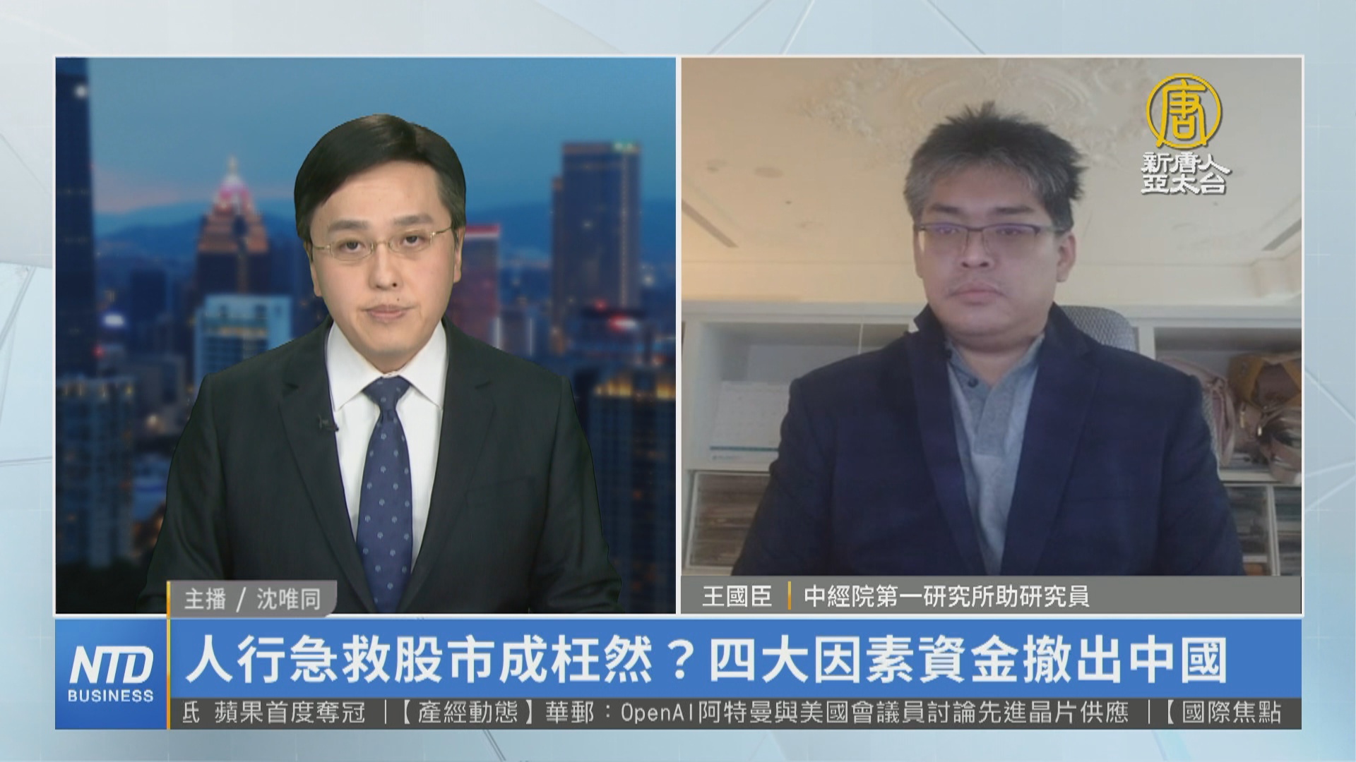【新唐人亞太台 2024 年 01 月 25 日訊】全球資本市場不斷創新高的時候,那中國股市是出現了不斷崩跌行情,昨天中共人行宣布要再度降準降息,我們請教中經院第一研究所助研究員王國臣老師,怎麼解讀當局措施以及中國大量資金出走的現象?