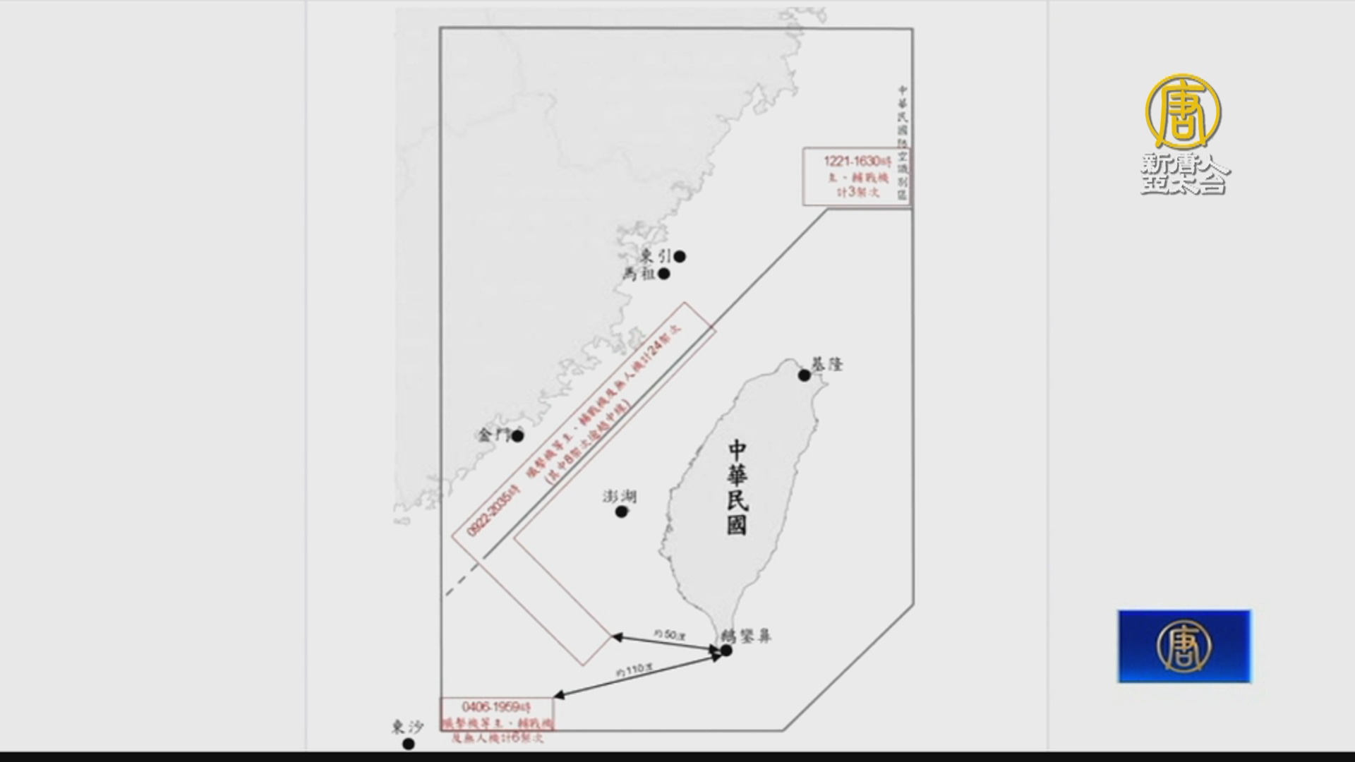 2022-08-08 11:44:55昨天有66架次共機擾台、22架次越中線或延伸線,中華民國國軍除了廣播驅離,並以空中偵巡兵力、海軍艦艇,以及岸置飛彈適切應處。另外,金門防衛指揮部表示,昨晚有1架無人機闖入金門禁限制水域上空,駐軍發現隨即依標準作業程序,發射信號彈警示驅退;金防部也首度公布驅退無人機畫面。