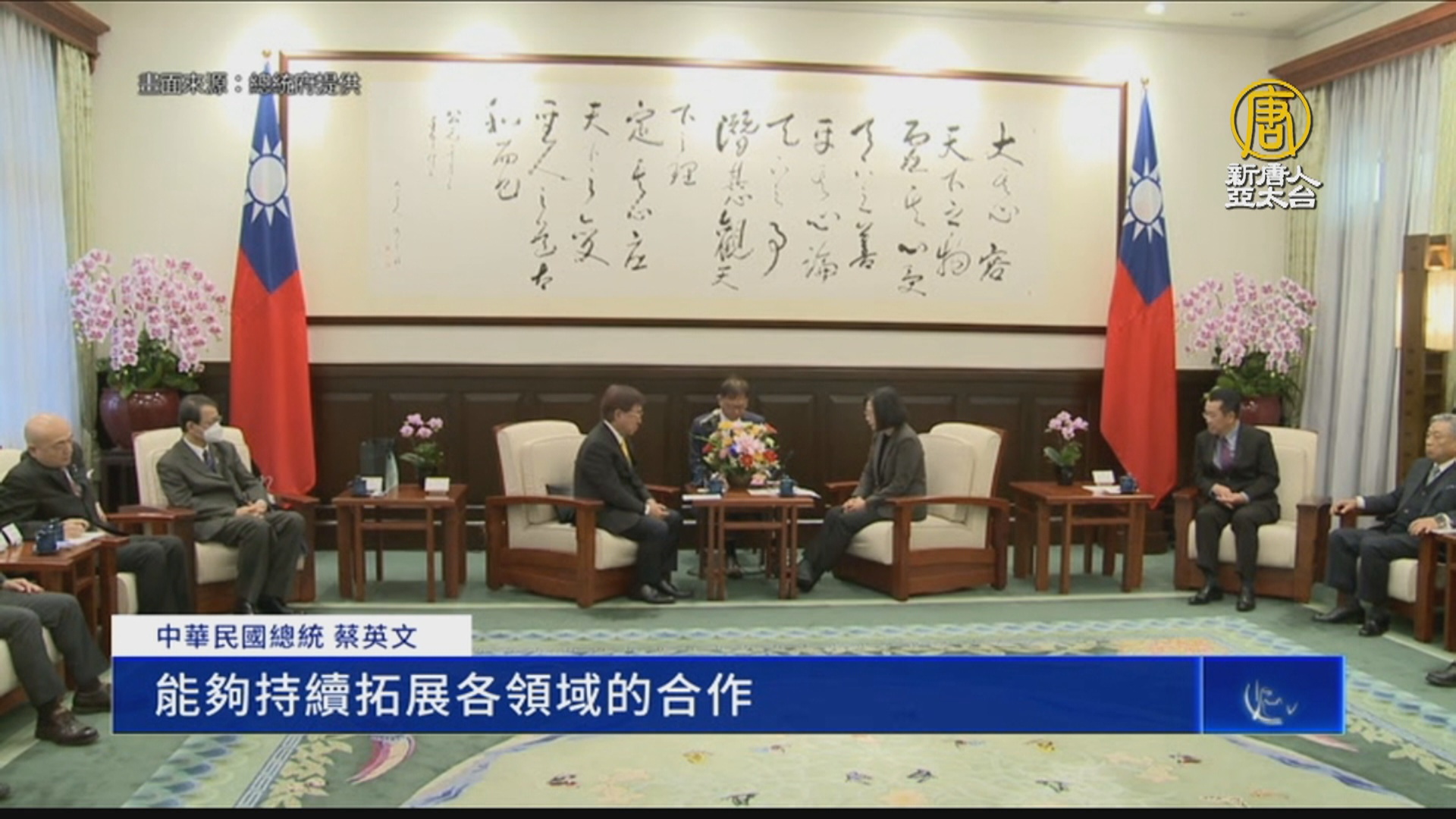 【新唐人亞太台 2024 年 02 月 23 日訊】日本智庫「?川和平財團」訪團來台,日本前國安局次長兼原信克、前駐台代表泉裕泰,今天拜會中華民國總統蔡英文。蔡總統感謝日方強調台海和平穩定。