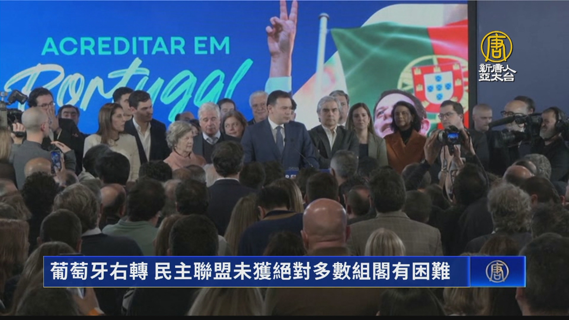 【新唐人亞太台 2024 年 03 月 11 日訊】歡迎回來。來關心國際消息,葡萄牙國會大選(10日)落幕,由立場中間偏右的民主聯盟勝出。不過在國會沒有取得過半席次,要爭取籌組新政府,可能需要與極右翼政黨聯手,但民主聯盟已表明拒絕談判。葡萄牙後續政局可能不穩。