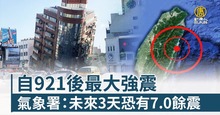 自921後最大強震 氣象署:未來3天恐有7.0餘震