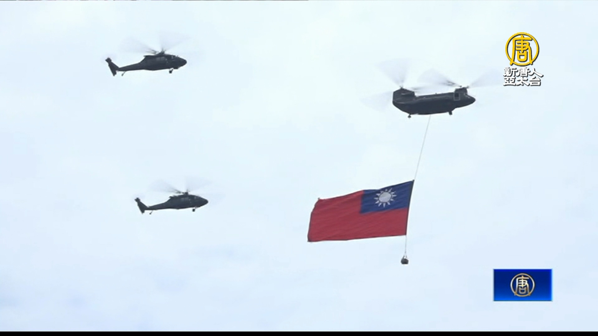 一架CH-47運輸直升機緩緩進場,掛著青天白日滿地紅的巨幅國旗,還有兩架黑鷹直升機在後方護衛,接著是阿帕契攻擊直升機及超級眼鏡蛇攻擊直升機,還有首次加入編隊的海軍反潛直升機。