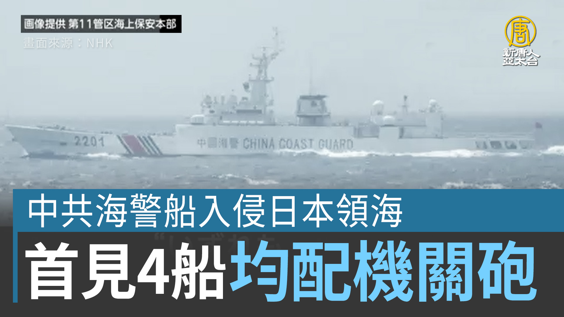 【新唐人亞太台 2024 年 06 月 07 日訊】中共不只騷擾台海,也持續在東海、南海挑釁。日本公布,4艘中共海警船,今天上午8點半左右,駛入釣魚台列嶼周邊的「鄰接區」。據日媒NHK報導,日本海上保安本部表示,這是首度確認4艘中共海警船都配備疑似機砲的裝置,4艘船在上午10點半左右,相繼駛入釣魚台列嶼南小島的「領海」,直到中午12點25分左右,才從該島的東南東離開「領海」。