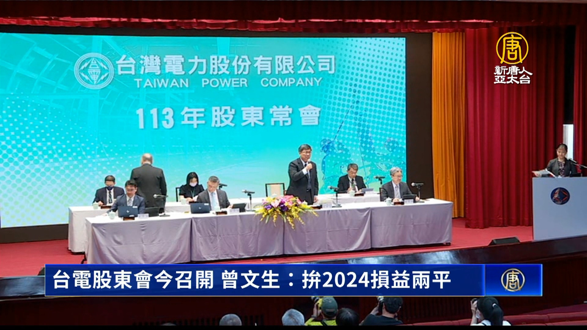 【新唐人亞太台 2024 年 06 月 21 日訊】台電今天(21日)召開股東會,外界最關注就是台電虧損情形,董事長曾文生今天表示,希望今年就能夠達到損益兩平。