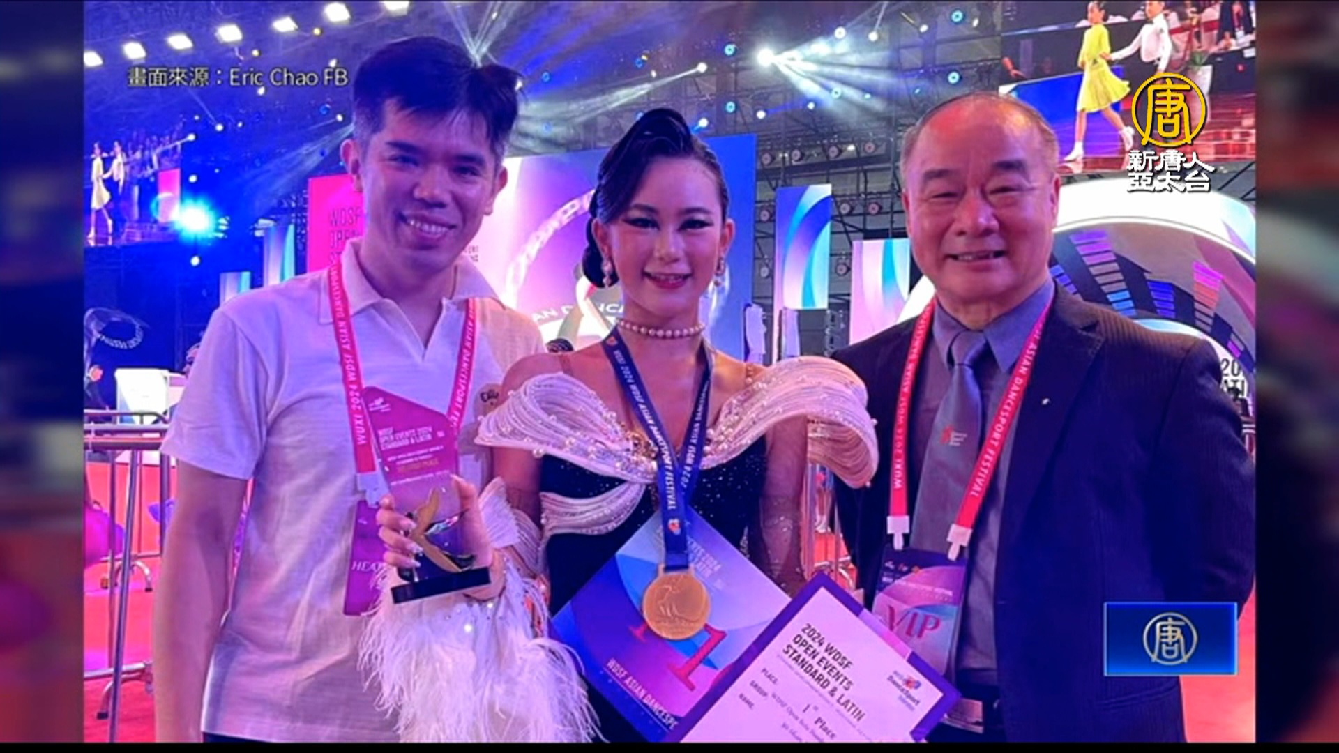 【新唐人亞太台 2024 年 07 月 20 日訊】台灣選手王儀珊參加中國無錫亞洲體育舞蹈節,擊敗多名中國選手奪下金牌,這也是中華台北代表隊,歷年參與無錫賽事的首面金牌。年僅15歲的王儀珊,目前在世界運動舞蹈總會(WDSF)女子單人標準舞青年與青少年二級組,都排名世界第一。王儀珊下週將前往馬來西亞參賽,再前往歐洲集訓備戰,期望在德國公開賽挑戰連霸。