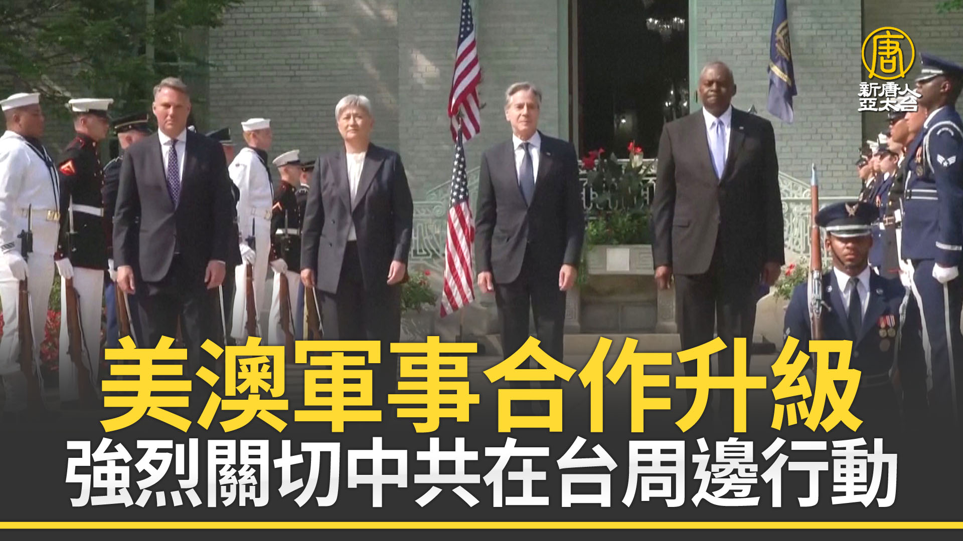 【新唐人亞太台 2024 年 08 月 07 日訊】美國、澳洲6日宣布了一系列安全合作計劃,包括在澳洲設立新的「行動地點」、更頻繁的部隊輪調,並正式制定兩款關鍵制導武器的聯合生產計劃。美國防長奧斯汀在第34屆美澳部長級諮商(AUSMIN)的新聞發布會上表示,美澳間「牢不可破的聯盟」,正變得越來越緊密。會上包括澳洲防長馬爾斯、外長黃英賢與美國國務卿布林肯,在聯合聲明中,對中共在南海透過武力或脅迫,改變現狀的單方面行動表示擔憂,並強烈關注中共在台灣周邊的軍事和海警活動。