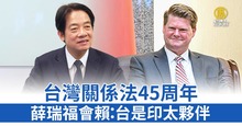 台灣關係法45周年 薛瑞福會賴:台是印太夥伴