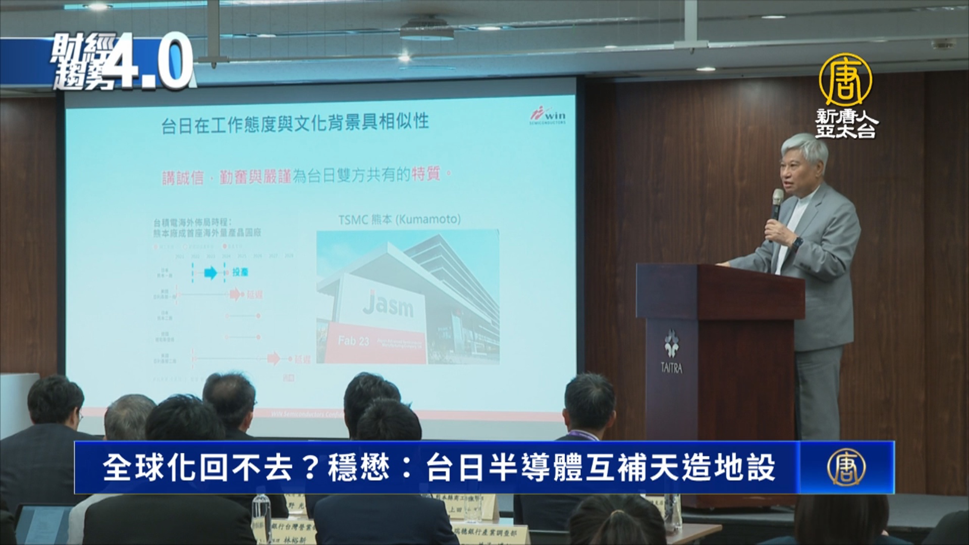 【新唐人亞太台 2024 年 09 月 07 日訊】美國總統大選即將登場,地緣政治下,台日半導體將會面對怎樣的挑戰?穩懋董事長陳進財,在半導體展的台日供應鏈交流會上說,全球化,已經回不去,台日半導體的互補,天造地設。