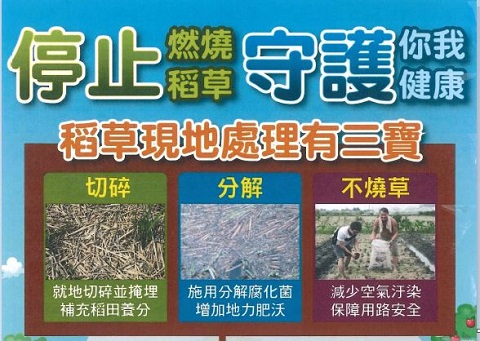 為鼓勵農民使用稻草分解菌,農糧署及環境部共同補助每公斤(升)5元,每公頃最高補助金額1,000元,除能有效降低環境污染,亦助於改善土壤質量,對農地長期生產也有著正面效應。