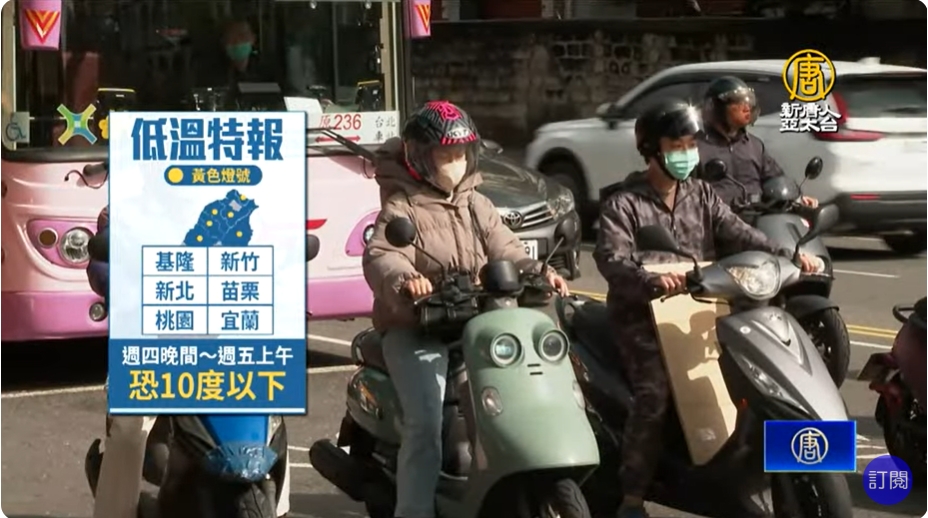 【新唐人亞太台 2024 年 11 月 28 日訊】好,鏡頭轉回台灣,氣象署在今天上午,針對北部7個縣市發布了低溫特報,同時提醒明天29號與30號的清晨,將是這波冷空氣最冷的時候。而下週雖然溫度稍微回升,但仍需要多加留意日夜溫差大。