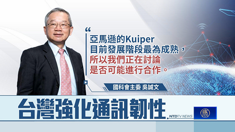 【新唐人亞太台 2024 年 12 月 18 日訊】歡迎回來,面對中共軍事威脅,台灣加強通訊衛星發展。日本媒體報導,台灣國科會主委吳誠文透露,台灣正在與亞馬遜,討論衛星寬頻網路合作,強化通訊韌性。數位發展部也表示,不排除與有提供服務、以及合乎國安要求的任何衛星業者合作。