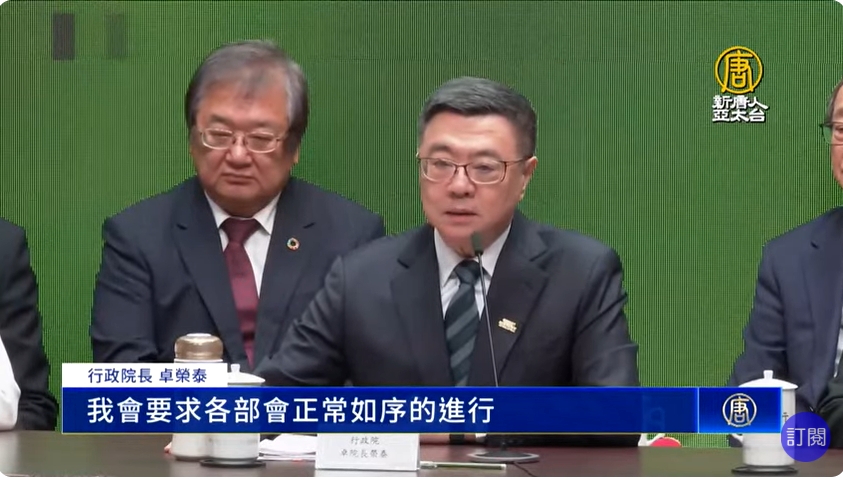 行政院長 卓榮泰:「如果今天立法院繼續做這樣的工作,繼續不顧我們剛剛所提出的沉痛的呼籲,行政院無法接受國會這樣的凌辱。我只能說無論預算怎麼刪除,國家未來的正式運作。我會要求各部會正常如序的進行,這是為人民,這是我們忠於國家必須要做的。」
