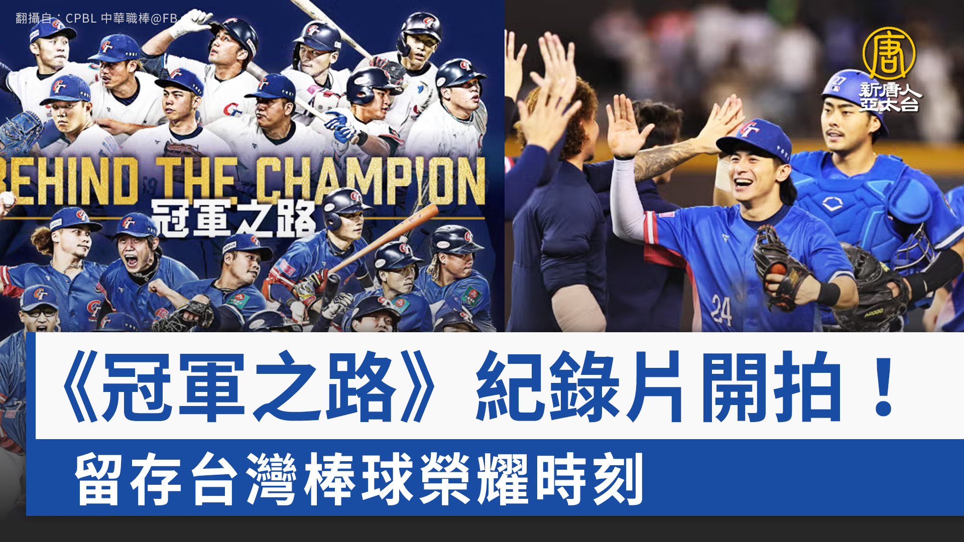 【新唐人亞太台 2025 年 02 月 18 日訊】世界12強台灣棒球英雄,從不被看好到奪冠的過程,激勵台灣人的心,企業界出資號召,整合台灣資源,共同打造的紀錄片《冠軍之路》正式開拍,將Team Taiwan冠軍精神,透過影像,永久流傳。