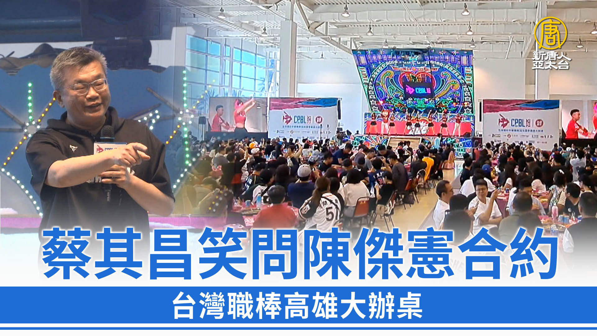 【新唐人亞太台 2025 年 03 月 15 日訊】台灣中華職棒,今天(15日)選在高雄展覽館,舉辦開季大辦桌。席開百桌,6大球團明星選手,加上36位啦啦隊女孩,連袂出席。高雄市長陳其邁與中職會長蔡其昌,不僅比耶合照,蔡其昌現場還笑問,台灣隊長陳傑憲合約,一陣幽默讓全場笑聲不斷。