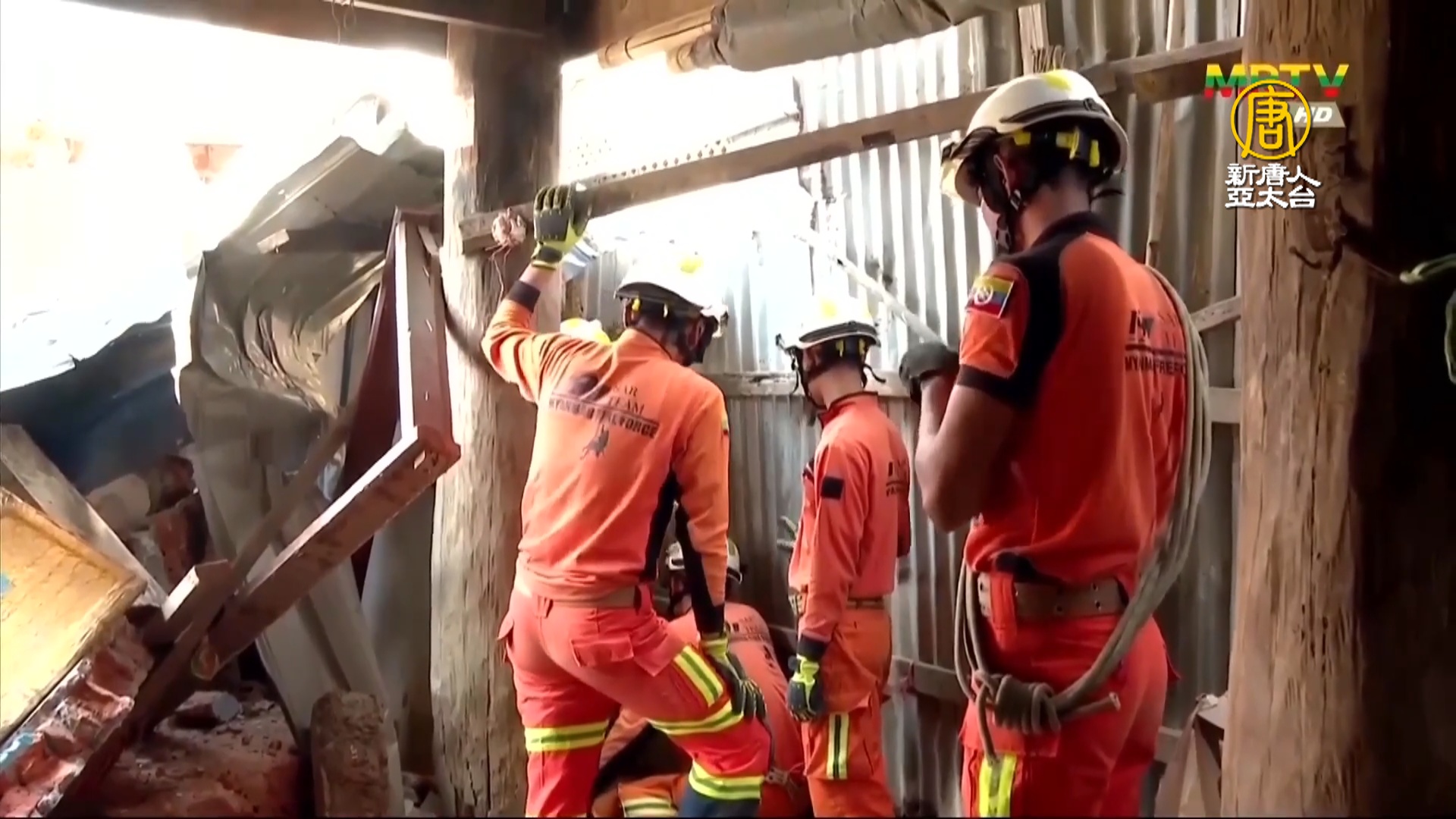 緬甸消防局救援人員:「我們成功從廢墟中救出一名約24歲男子,救援花了24小時。他被困在廢墟下大約40小時。」