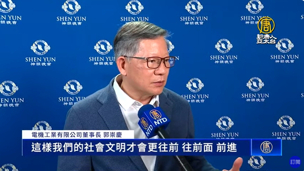 電機工業有限公司董事長 郭崇慶 :「(神韻)表達傳統文化的美,或是歷史故事,或是人必須要經過一段苦難的修煉」「人有信仰是最美的,因為我們堅持是堅持對的事情,這樣我們的社會文明才會更往前,往前面前進。」
