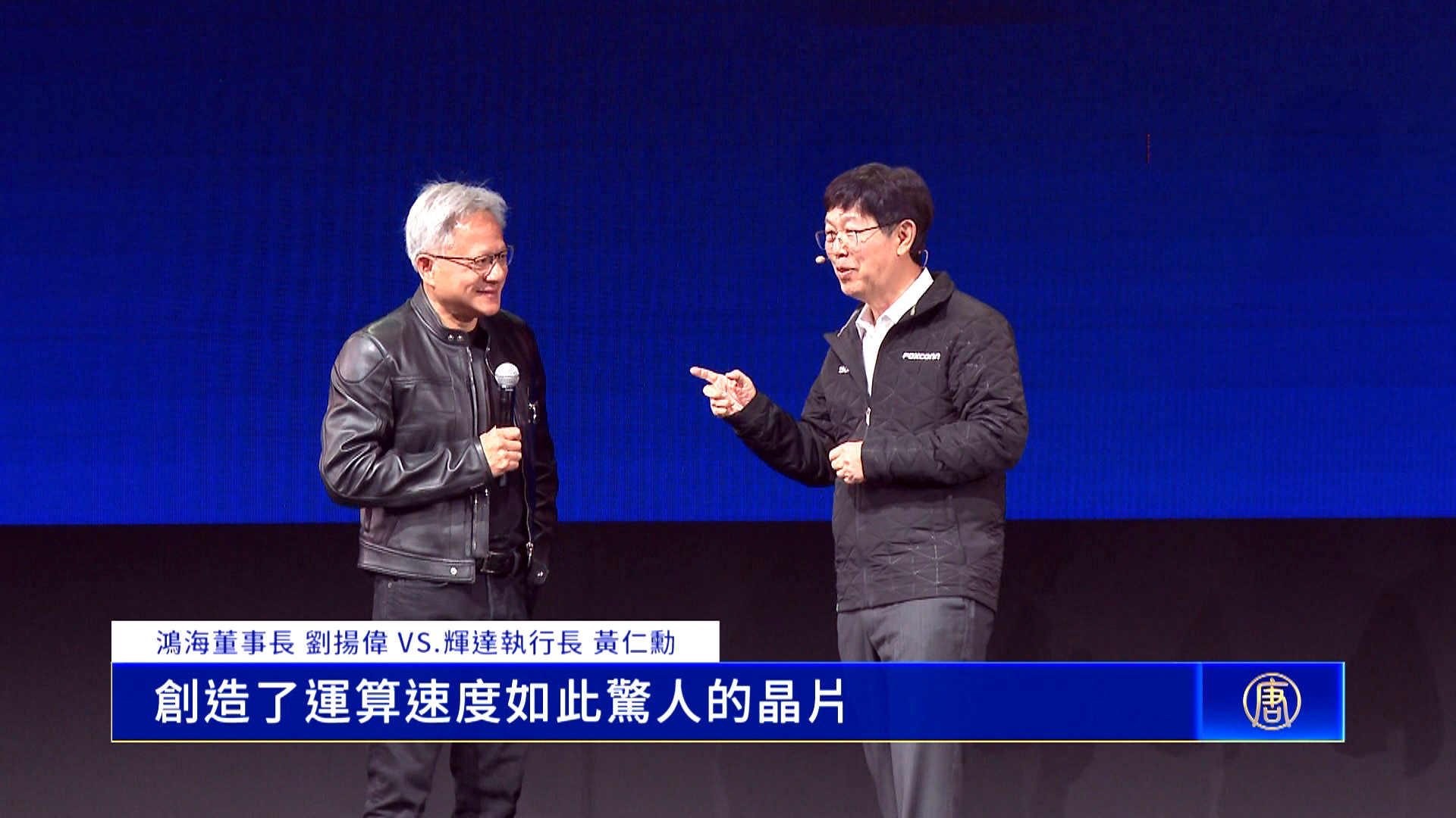 【新唐人亞太台 2025 年 05 月 20 日訊】鴻海集團董事長劉揚偉20日,在COMPUTEX發表主題演講,輝達(NVIDIA)執行長黃仁勳,壓軸登場,兩人針對AI工廠、機器人應用、製造業轉型等議題展開深入對談,對於AI發展速度,黃仁勳預期發展超過摩爾定律。
