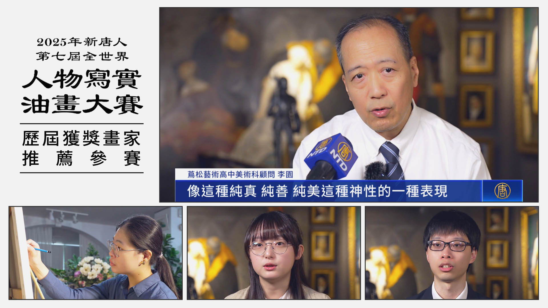 【新唐人亞太台 2025 年 06 月 17 日訊】由本台舉辦的,全世界人物寫實油畫大賽,今年邁入第七屆。大賽的內涵與宗旨,吸引新銳畫家再度報名,歷屆得獎者,也鼓勵同好,報名參賽。
