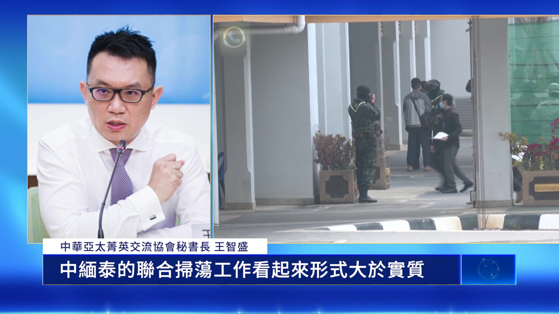 中華亞太菁英交流協會秘書長 王智盛:「中緬泰的聯合掃蕩工作看起來形式大於實質,後面到底可能有更複雜的共犯結構來成形,取得相當數量多的星象鏈工具來作為網路詐騙的新型態的工具使用。」