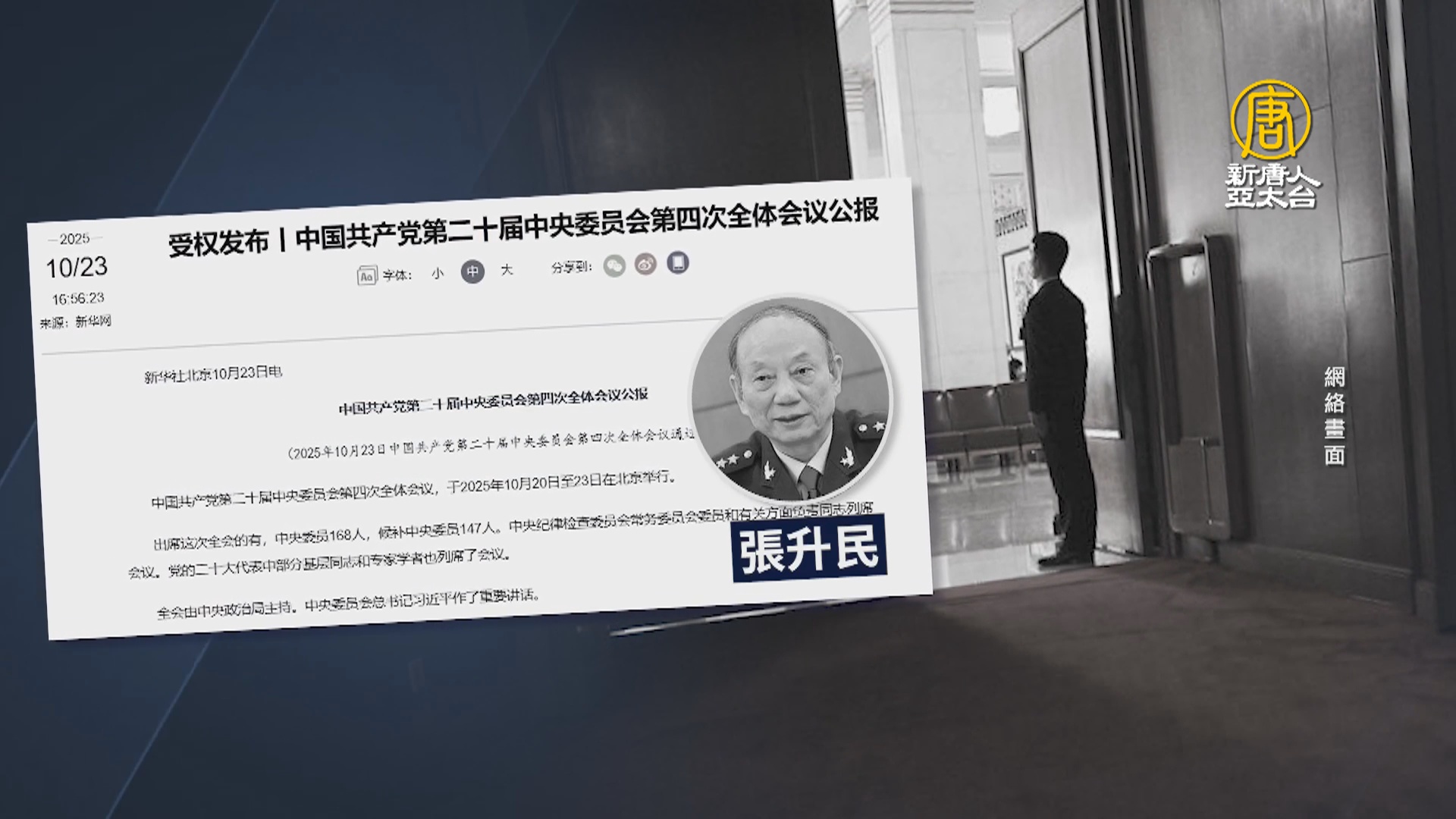 【新唐人亞太台 2025 年 10 月 24 日訊】歡迎回來,帶您關心,為期4天的中共20屆四中全會10月23日閉幕,人事異動仍是外界關注焦點。外界解讀四大異常,包括,中央軍委紀委書記張升民,雖然被增補為軍委副主席,但卻並沒有被遞補為政治局委員;中共軍委委員的空缺也沒有增補;會議缺席人數接近60人;以及,董軍2023年12月出任國防部長,至今未按慣例升任軍委委員、國務委員,四大異常被解讀為,共軍內鬥仍暗潮洶湧。