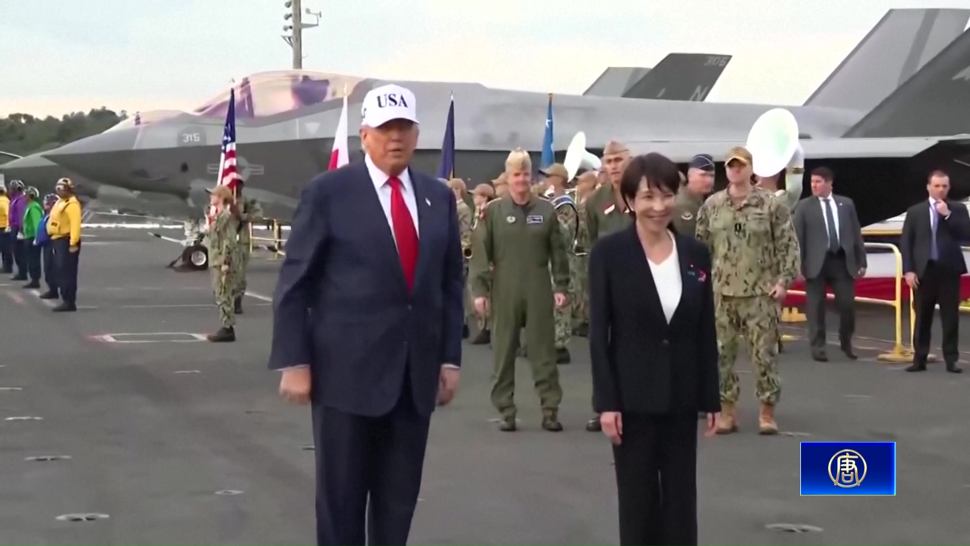 【新唐人亞太台 2025 年 10 月 28 日訊】美日同盟再上層樓!川普與高市早苗會談之後,兩人一同搭乘美國總統直升機專機,前往橫須賀基地,也就是駐日美軍的軍港。川普向6千名駐日美軍官兵發表演說,也帶來好消息,宣布已批准首批美製F-35飛彈交付日本自衛隊。高市早苗也承諾,將從根本上強化日本軍力。