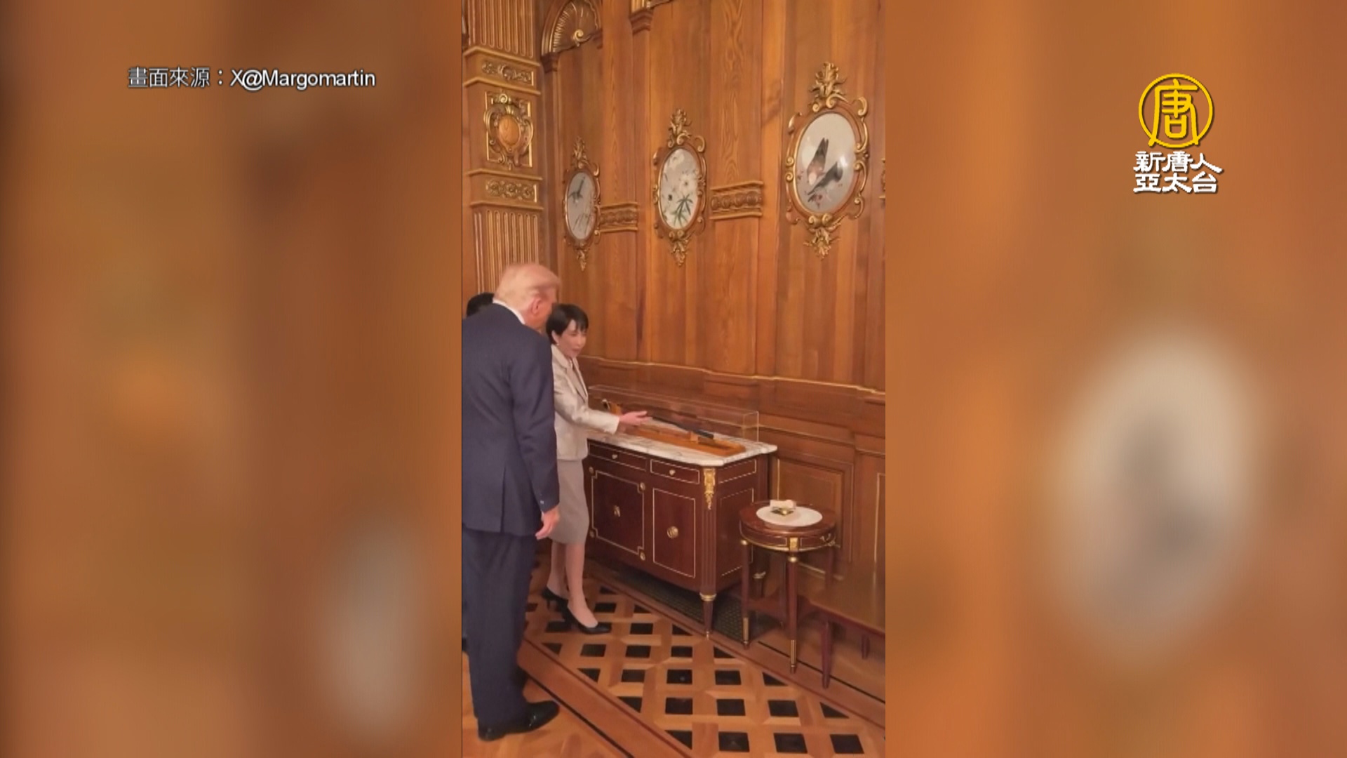 【新唐人亞太台 2025 年 10 月 29 日訊】繼續來看到,美國總統川普與日本首相高市早苗會面,互動相當熱絡,兩人在正式峰會前,還一同觀看了美國職棒世界大賽道奇隊與藍鳥隊的精采對決,高市也贈送了前首相安倍晉三的高爾夫球桿給川普。下午兩人則一起登上美軍核動力航母,川普邀請高市登台演說時,還稱呼她是「親密朋友」。