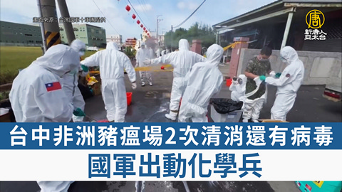 【新唐人亞太台 2025 年 10 月 31 日訊】持續追蹤,台中的非洲豬瘟疫情。陸軍十軍團,週四(30日)晚間開始,出動化學兵到案發豬場,進行地毯式清消。中央前進應變所指揮官今天(31日)指出,該案場清消多次,但在昨天(30日)晚間國軍進駐清消前,竟然又驗出3處病毒陽性。