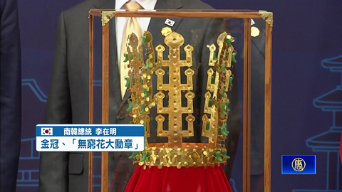 美國總統川普亞洲行,國際領袖送禮比心意、比巧思,APEC東道主,南韓總統李在明,贈送新羅時代「天馬塚金冠」為藍本的複製品,並頒授韓國最高榮譽「無窮花大勳章」。