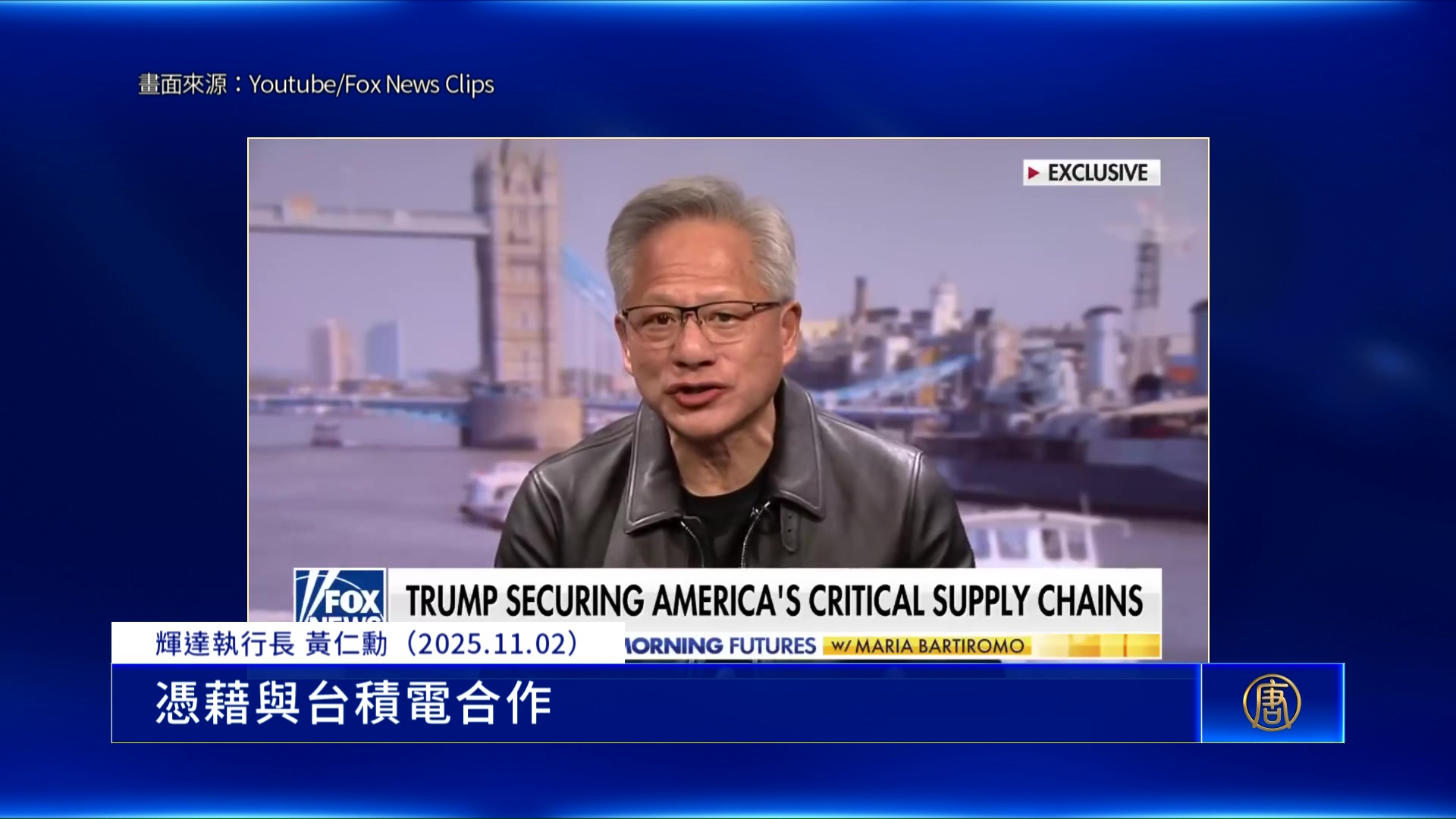【新唐人亞太台 2025 年 11 月 03 日訊】美國總統川普大力推動製造業回流美國,輝達執行長黃仁勳2號接受美國媒體訪問時強調,憑藉與台積電等台灣廠商合作,輝達在短短九個月內,便實現先進製造業重返美國的目標。此外,美國總統川普表示,輝達最新Blackwell晶片,不會賣給其他國家。