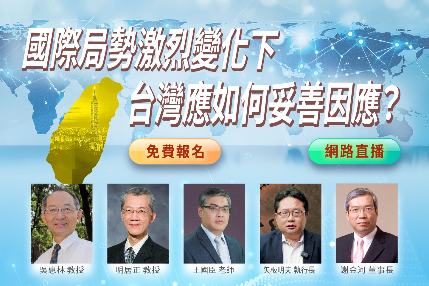 【直播預告】國際局勢激烈變化下,台灣應如何妥善因應?