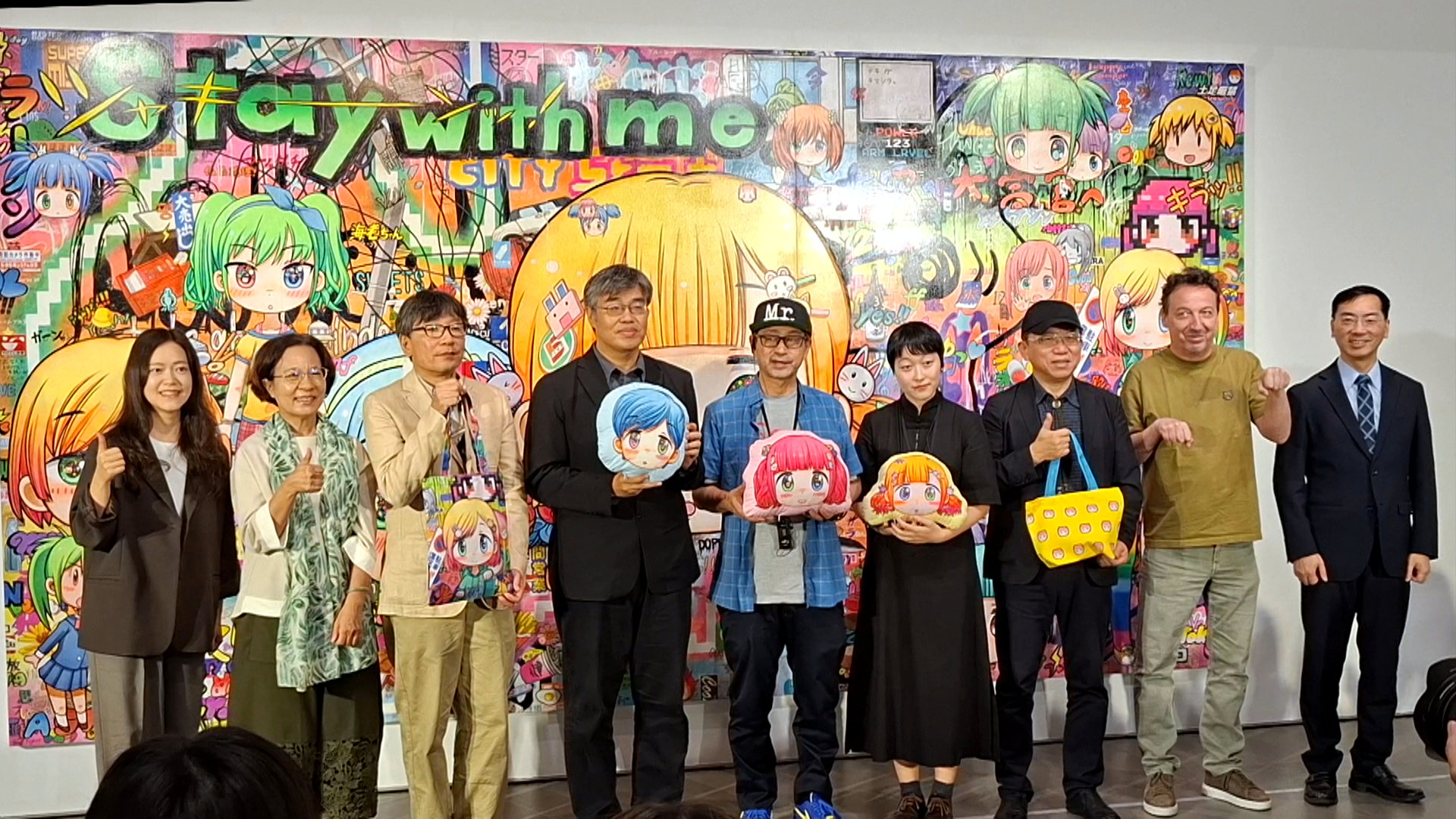 【新唐人亞太台 2025 年 11 月 10 日訊】高雄內惟藝術中心開館三年首次特展《Mr.の奇想愛情》10日開幕,村上隆首席弟子、日本超扁平與新普普代表藝術家Mr.與策展人田川市美術館館長工藤健志親自出席開幕式;展期自2025年11月11日至2026年4月26日,展出Mr.大型繪畫、雕塑、收據繪畫等未曾於台灣呈現的作品,以及大型戶外少女、夜間展場長型落地窗貼等高雄限定元素。