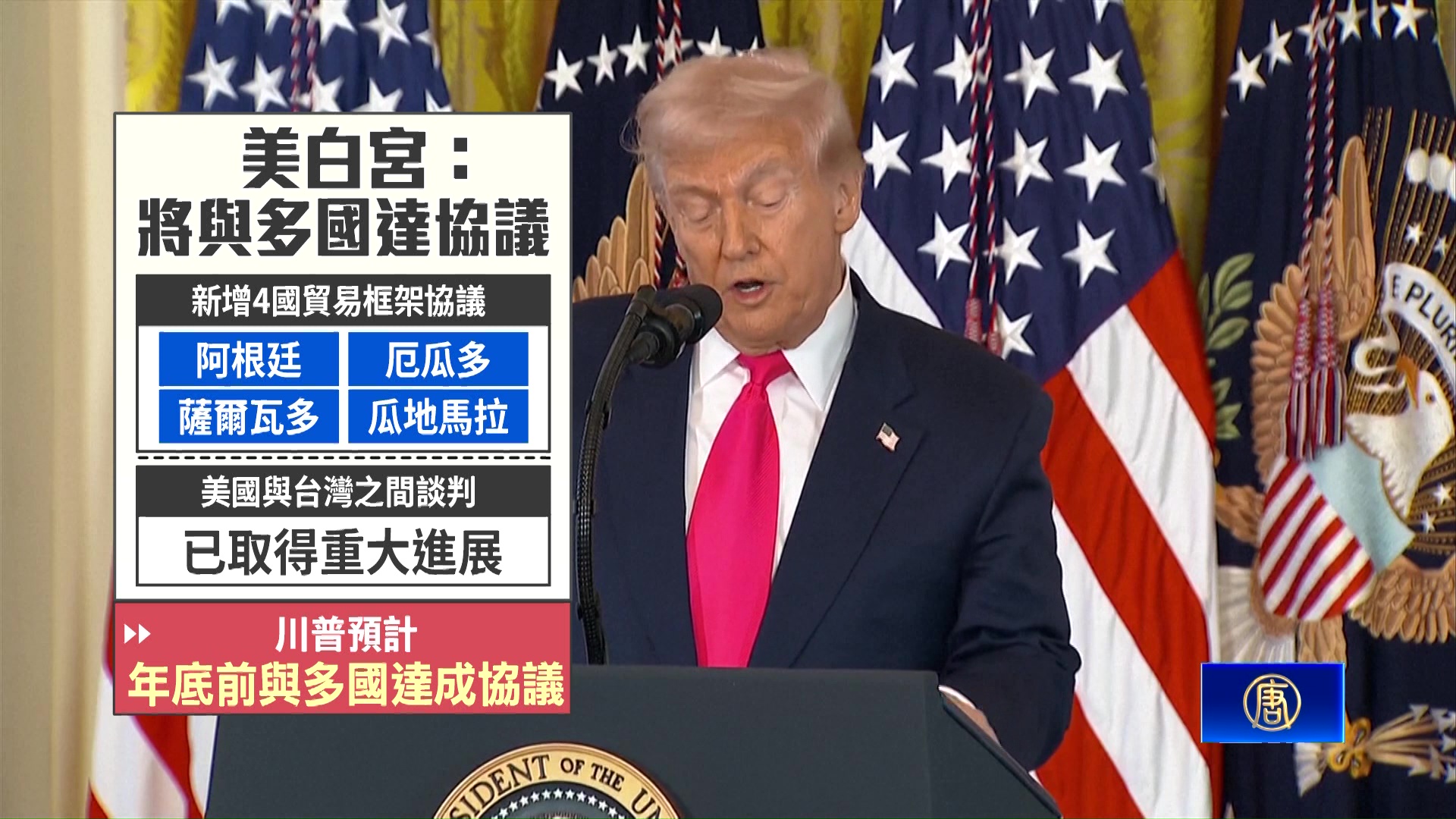 【新唐人亞太台 2025 年 11 月 14 日訊】來關心,台美談判持續進行中,有美國媒體報導,台灣將承諾對美國投資金額計畫,而白宮最新公布了與四個國家的貿易框架協議,官員更指出與台灣之間的談判,已經取得重大進展。
