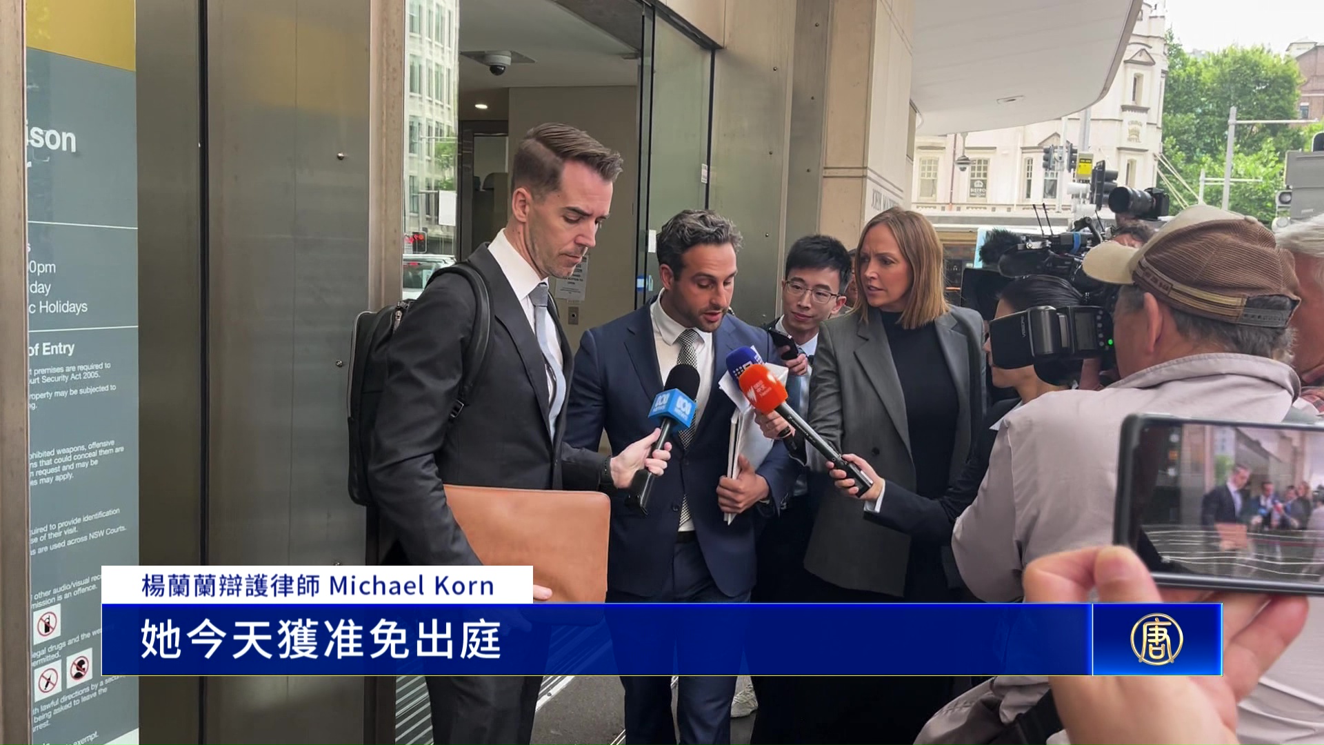 【新唐人亞太台 2025 年 11 月 14 日訊】歡迎回來。來自中國的神祕女富豪楊蘭蘭,豪車撞人案,事發超過三個月,案件今天(在澳洲悉尼進行了第四次提訊。楊蘭蘭本人沒有到場,她的律師對所有指控都不認罪。此外,警方也沒有透露,楊蘭蘭是否遵守了每週向警察報到的規定,讓外界猜疑,楊蘭蘭人是否已不在澳洲。