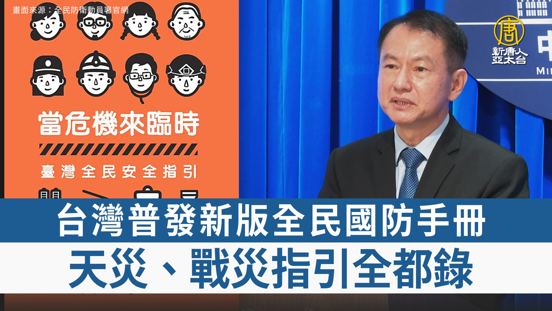 【新唐人亞太台 2025 年 11 月 18 日訊】應對中共武力恫嚇,台灣政府推出的,全新版本全民國防手冊,要在明天(19日)開始普發,總共1千1百萬本,內容可以說是,天災跟戰爭災害指引,全都收錄。這波普發措施,接軌國際生存指引趨勢,台灣的983萬多戶,都可以各自拿到1本,連各國外館駐台機構,都拿得到。預計2026年1月初,就會完成發放。