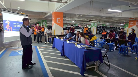 鳳山運動園區地下停車場周邊佈滿住宅及運動園區,停車場配置車格共614格,充電樁共有24座,平時使用率高,希望藉此次演練加強消防人員及停車場業者對於電動車災害的應變能力,同時也向市民朋友們說明消防局對於新能源車輛的關注與重視。