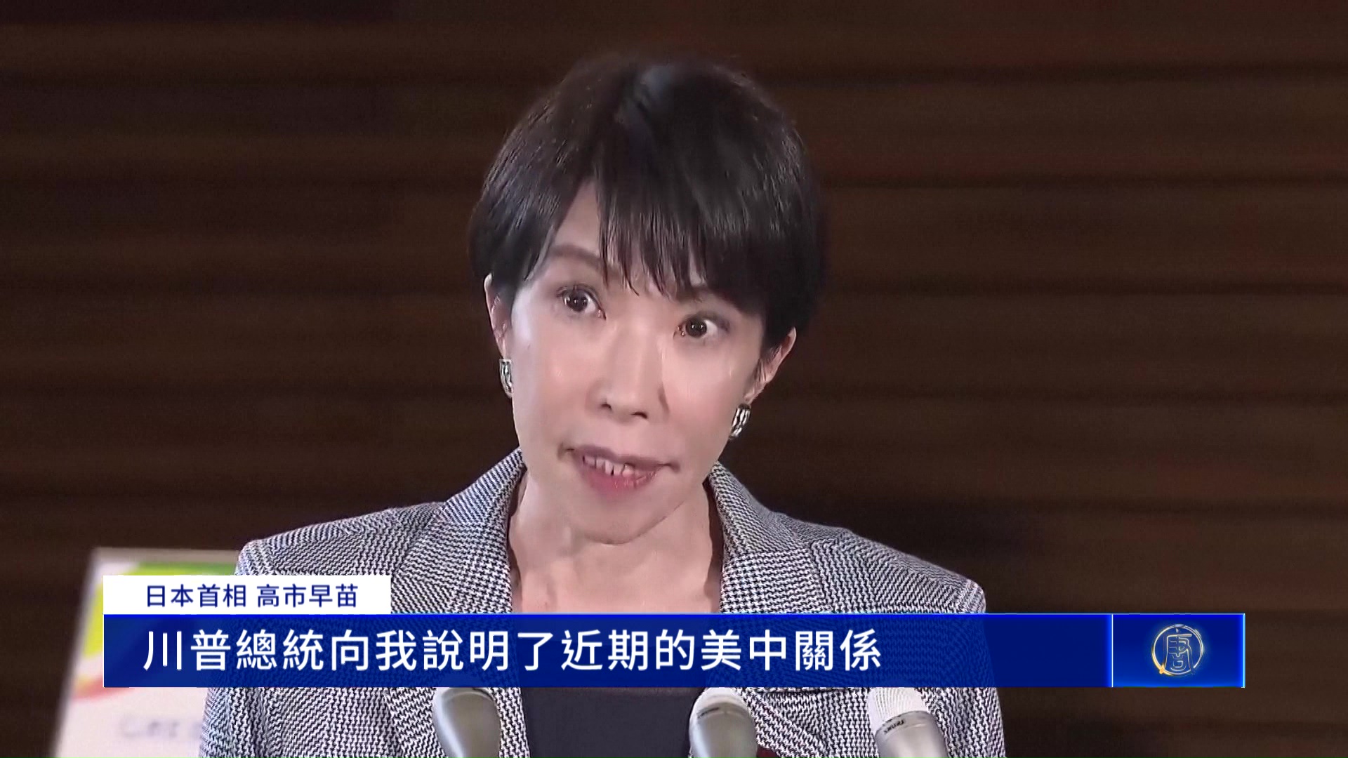 25號,美國總統川普,打電話給日本首相高市早苗,說明幾個小時前,川習通話的內容,媒體關注,兩人是否有提到台灣議題時,高市早苗表示,川普總統透露,美日是緊密盟友。