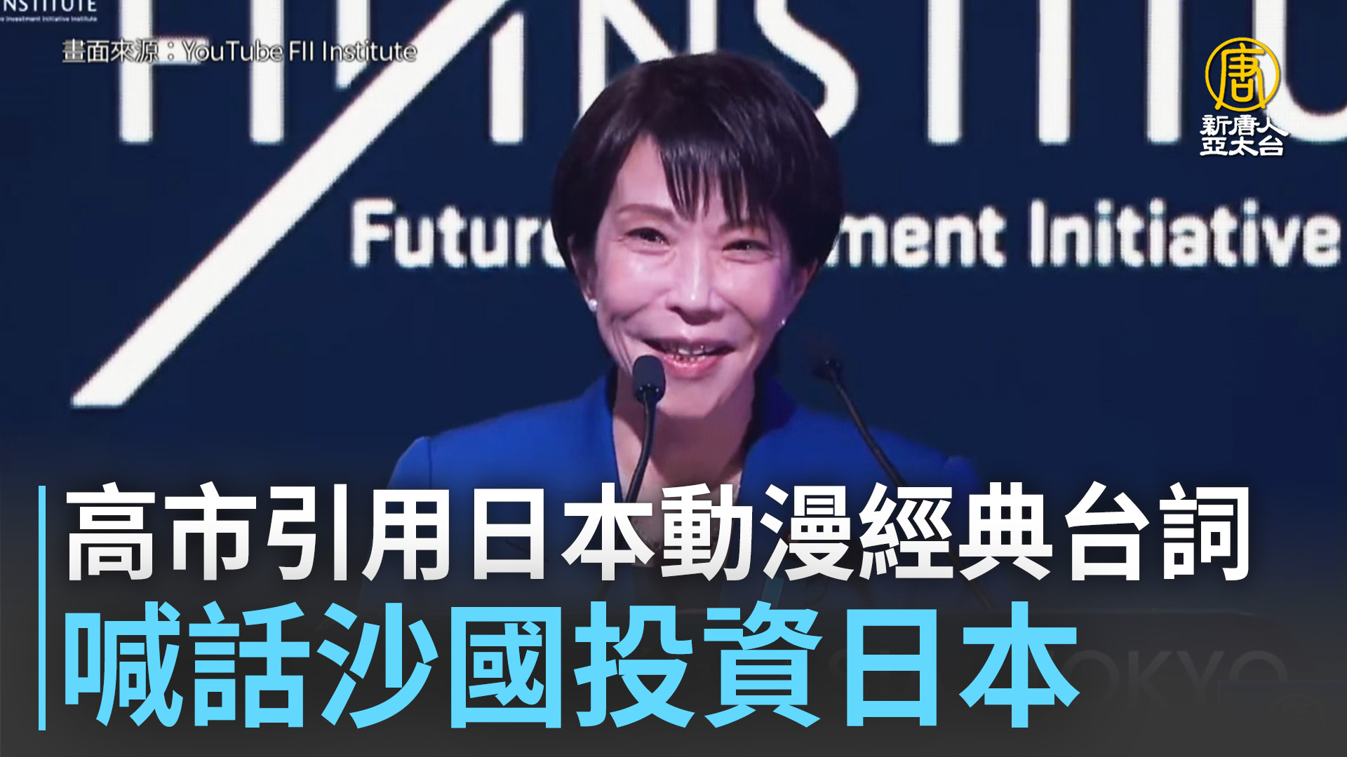 【新唐人亞太台 2025 年 12 月 02 日訊】來看到,沙烏地阿拉伯主辦的「未來投資倡議」會議,首度在日本舉行,日本首相高市早苗致詞時,引用日本動漫的經典台詞,喊話在場沙國投資者與企業家「投資日本」,高市強調,將強化日本經濟的供給結構,實現讓全球投資人也能信賴的經濟。