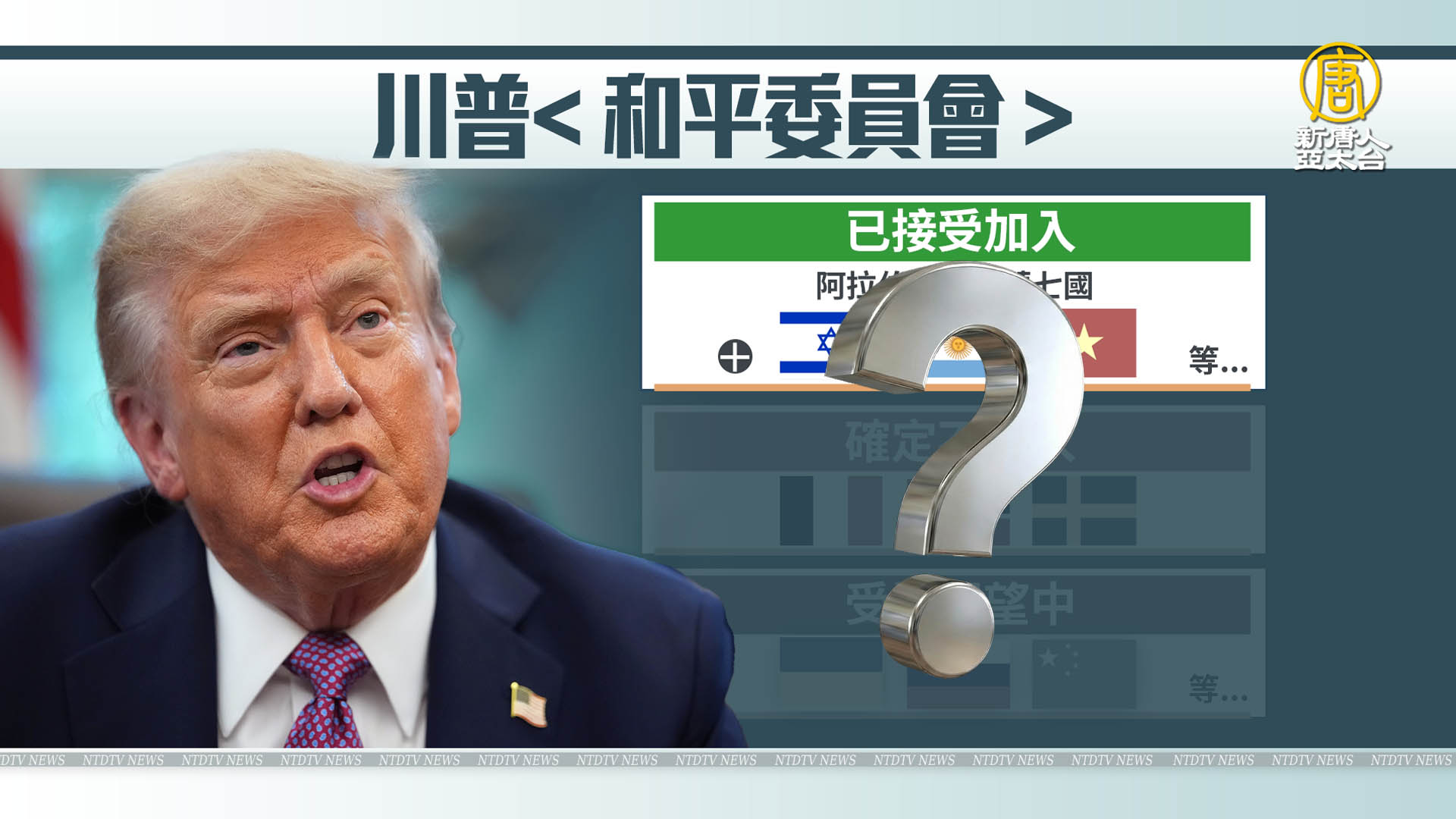 【新唐人亞太台 2026 年 01 月 22 日訊】再過五個小時,美國總統川普就要在瑞士當地宣布,成立「和平委員會」,目前已經有至少25個國家領導人接受了川普總統組建「新群」的邀請。已經同意加入的國家包括,以色列,以及七個主要伊斯蘭國;有三個國家確定不加入,包括法國、瑞典、挪威;而烏克蘭、俄羅斯與中共還沒有做出最後決定。