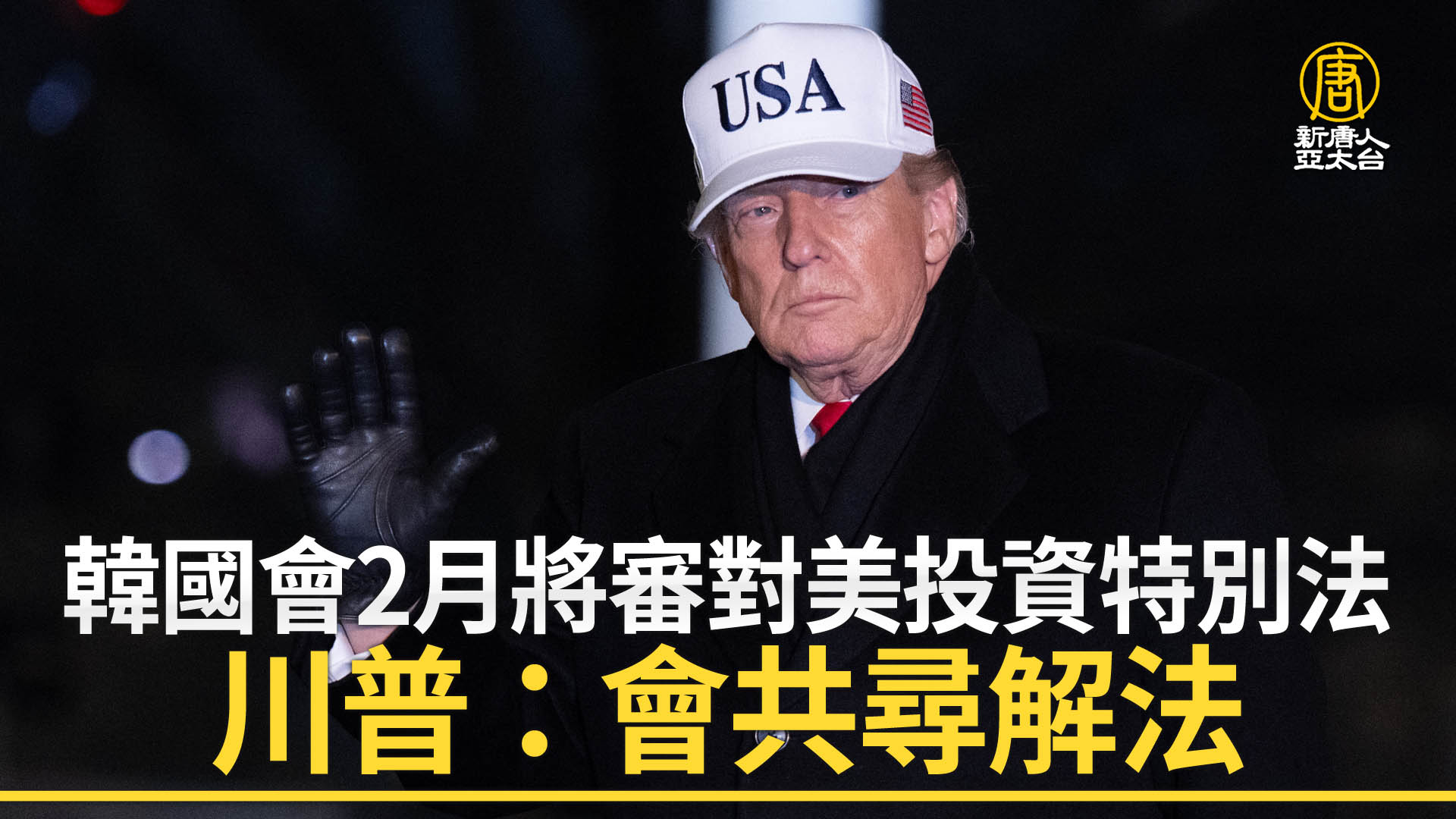 【新唐人亞太台 2026 年 01 月 28 日訊】美國總統川普本週突然宣佈,將對來自南韓的進口商品,調高變成徵收25%的關稅後,韓國緊急向美方提出說明,執政黨共同民主黨27日表示,「對美投資特別法」,已在去年11月底提出,12月到1月屬於冷卻期,按照常規程序,特別法的審議會在2月啟動。這似乎也讓川普態度稍微和緩,27日對記者說,美國會和南韓找到解決辦法。