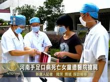 2010-07-09 16:37:40中國河南3歲女童曾亦菲患手足口病,在平頂山汝州第一人民醫院,因使用醫生私自提供的免疫球蛋白後猝死,醫院雇用20多名打手強行搶走屍體,受害家長還發現醫院塗改病歷,意圖逃避責任。