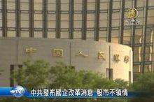 2015-09-15 20:30:26鏡頭轉到中國,中共官方,星期一舉行國企改革發佈會,不過,當天大陸上海、深圳股市下跌,滬指跌幅創三週最大,顯示中共推出國企改革意見後,股市仍然不領情,繼續下跌。
