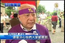 2012-05-20 21:12:58繼民進黨 昨天519舉辦 嗆馬大遊行,台聯也選擇在今天(20日)總統連任就職日,發起「反詐騙、要罷免」的抗議遊行,台聯黨主席黃昆輝親自領軍,儘管天候不佳,仍有上千位民眾,自願走上街頭,向馬政府表達心中的不滿。