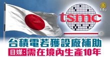台積電若獲得日本設廠補助 日媒:需在境內生產10年