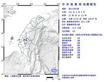 連兩震! 花蓮21:11規模5.0地震 嘉義21:54規模4.0地震